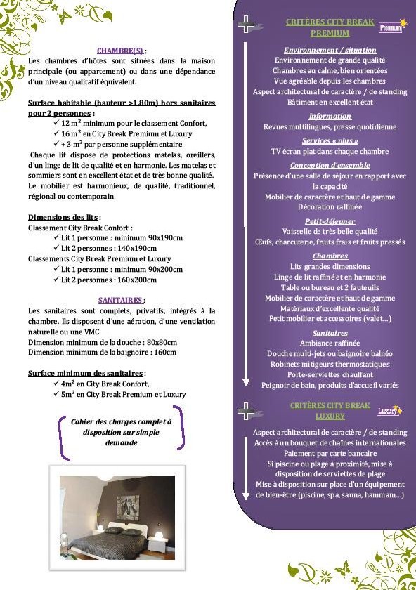 Quant aux critères pour les catégories CITY BREAK PREMIUM et LUXURY, les voici :